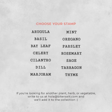Estos mini sellos con nombres de plantas en inglés están pensados para cocineros y amantes de la cocina que disfrutan teniendo sus propias hierbas aromáticas siempre a mano. Son perfectos para crear etiquetas en cerámica, barro o arcilla y marcar tus macetas de cocina: albahaca para la pasta, romero para el horno, menta para infusiones… todo organizado y...